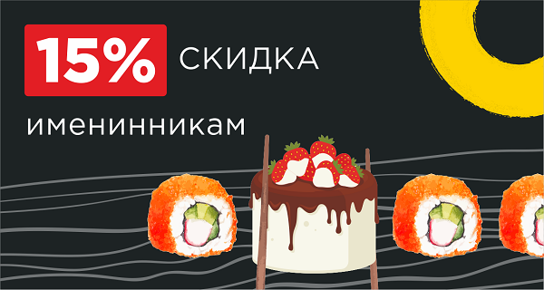 Дарим скидку 15% в честь Вашего Дня Рождения! Скидка действует 3 дня до и 3 дня после праздника. Распространяется на доставку и самовывоз. Не суммируется с другими акциями.